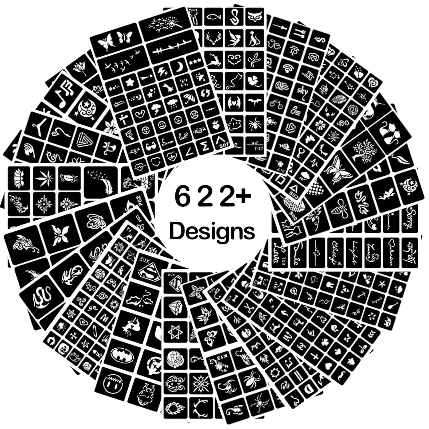 20 Sheets Temporary Tattoo Stencils, 622+pcs Henna Tattoo Stencil Kit for Girls Kids and Boys Face Body Paint DIY Art Reusable Glitter Tattoo Stencils Pack