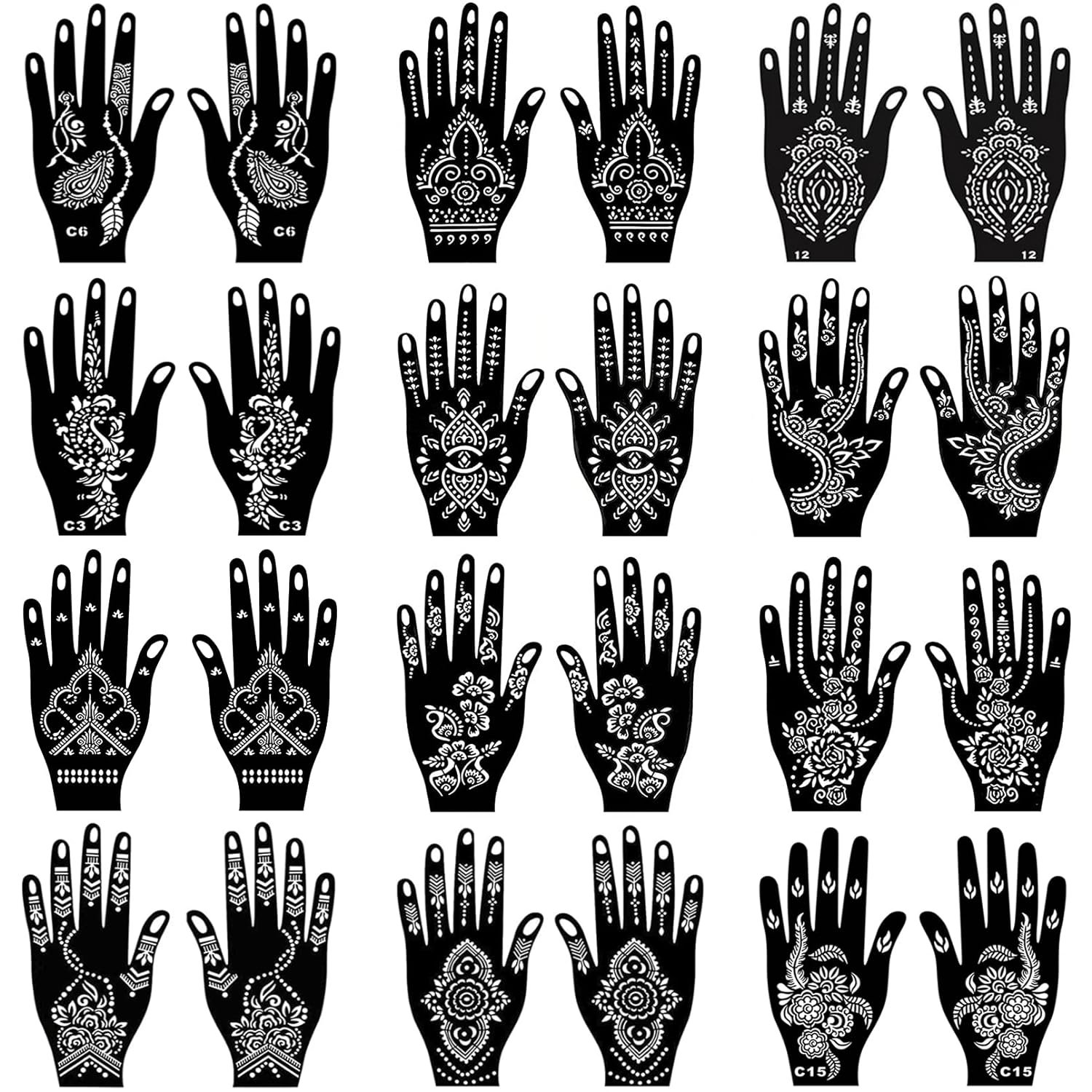 24 Sheets Henna Tattoo Stencils Kit for Hand, Indian Arabian Temporary Tattoo Template Mehndi Stencil Stickers