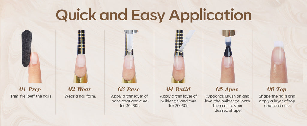 Easy to Apply: It is super easy to be applied and suitable for beginners and professional. It doesn't need a nail lamp to cure, which can avoid turning skin black and damaging skin from a nail lamp.