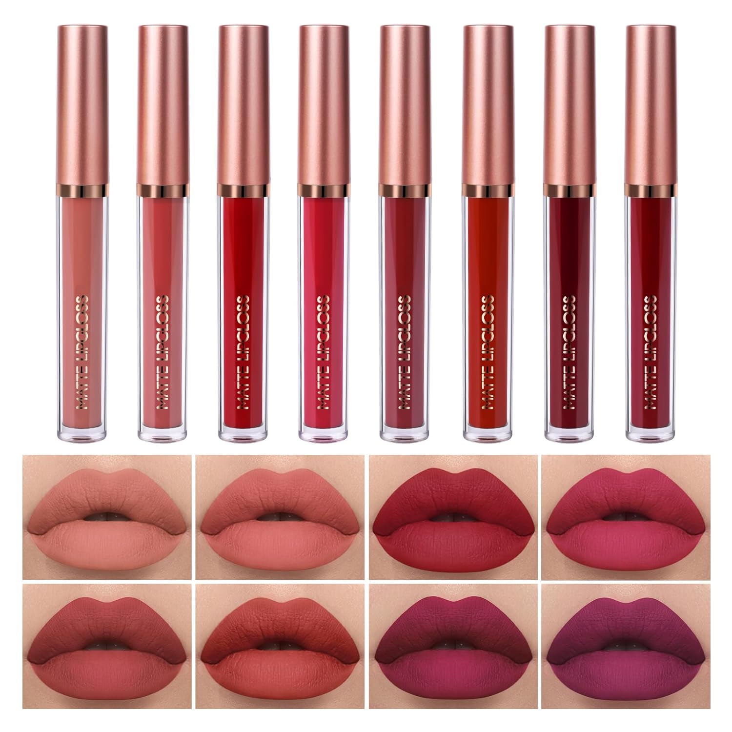 8 Pcs Matte Liquid Lipstick, Easter Gifts for Girls and Women Easter Basket Stuffers Lip Gloss Set Lipstick Makeup Gift Set, Long Lasting Non-Stick Cup Not Fade Waterproof Matte Lipstick
