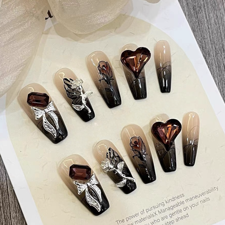 - The deep black base serves as a versatile canvas, allowing the burgundy gradient and gemstones to take center stage while complementing a wide range of outfits