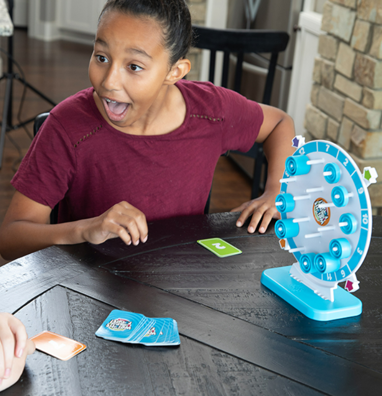 Line it up just right and you get to keep the card as a point. Get it wrong and you have to wait to try again on your next turn. Can you handle the suspense as the wheel swings back and forth past your number?