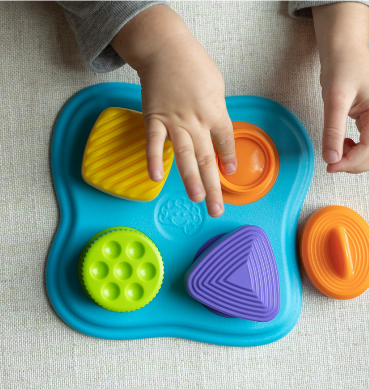 Each lid features a unique shape and textures to feel. But then, unscrew them and little ones discover even more excitement to explore.