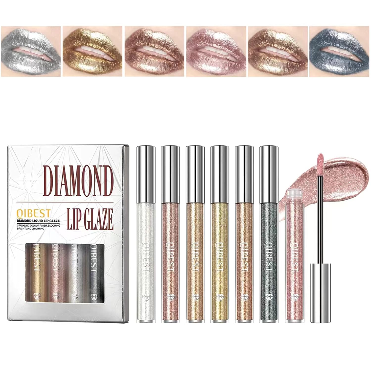 Glitter Liquid Lipsticks, Diamond Shimmer Metallic Lipstick Waterproof Long Lasting Lip Stain, Non Stick Cup Lipstick Makeup Kit Shinning Highly Pigmented Lip Gloss Set
