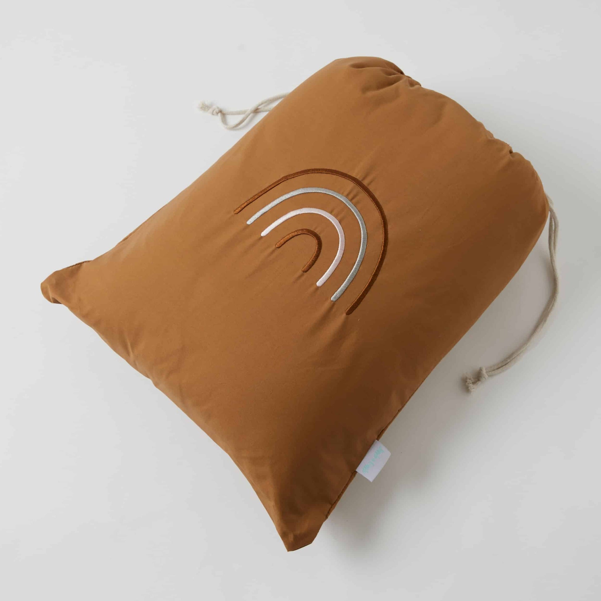 This gorgeous Rainbow Quilted Playmat will provide a touch of rainbow spirit to any nursery, bedroom or playroom. The extra soft padded and quilted mat is made entirely of cotton and has a soft filling that provides comfort and support for little ones. Babies may lie comfortably and explore their surroundings, while toddlers can use it as a rug or a blanket to snuggle in. The Rainbow Playmat is a great addition to any home décor and can be quickly rolled up and stored in its matching pouch. A fantastic portable play area suitable for kids of all ages!