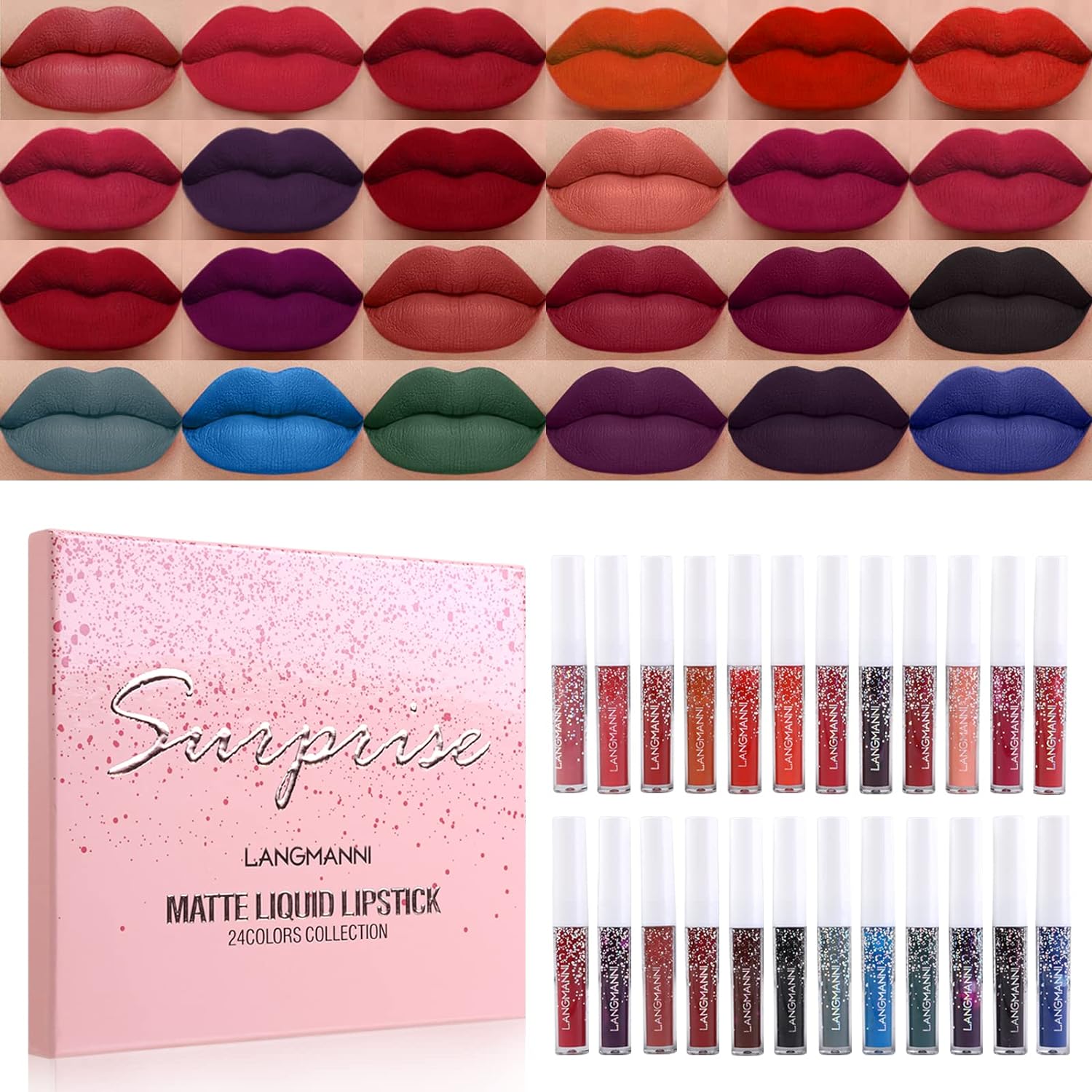 Matte Liquid Lipstick Set 24 Colors Shining Lip Gloss Set Waterproof Long Lasting Lip Kit High Pigmented Moisturizing Lipstick Set for Women Girls (24 Colors)