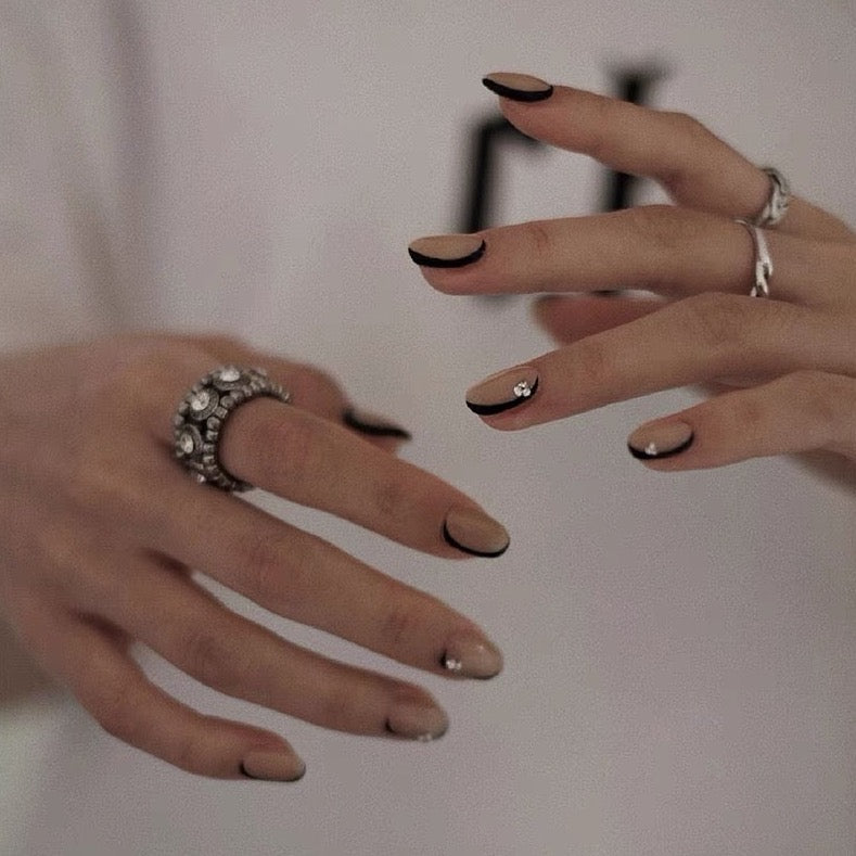 Each set features chic black half-moon edges, adding a touch of sophistication to your manicure. Whether you're attending a special event or simply want to elevate your everyday look, these press-on nails are the perfect accessory.
