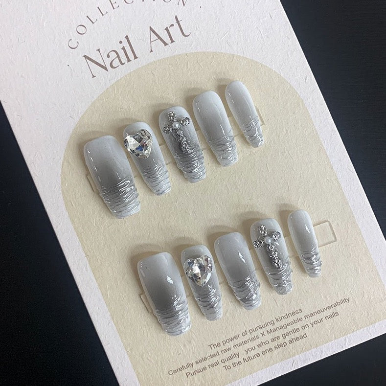 Experience a picturesque snow country with this delicate and striking nail art. A milky white base and smudged grey give it a clean and tidy look, ensuring a bright and clear finish. Easy to press and wear, it's the perfect addition to any look.